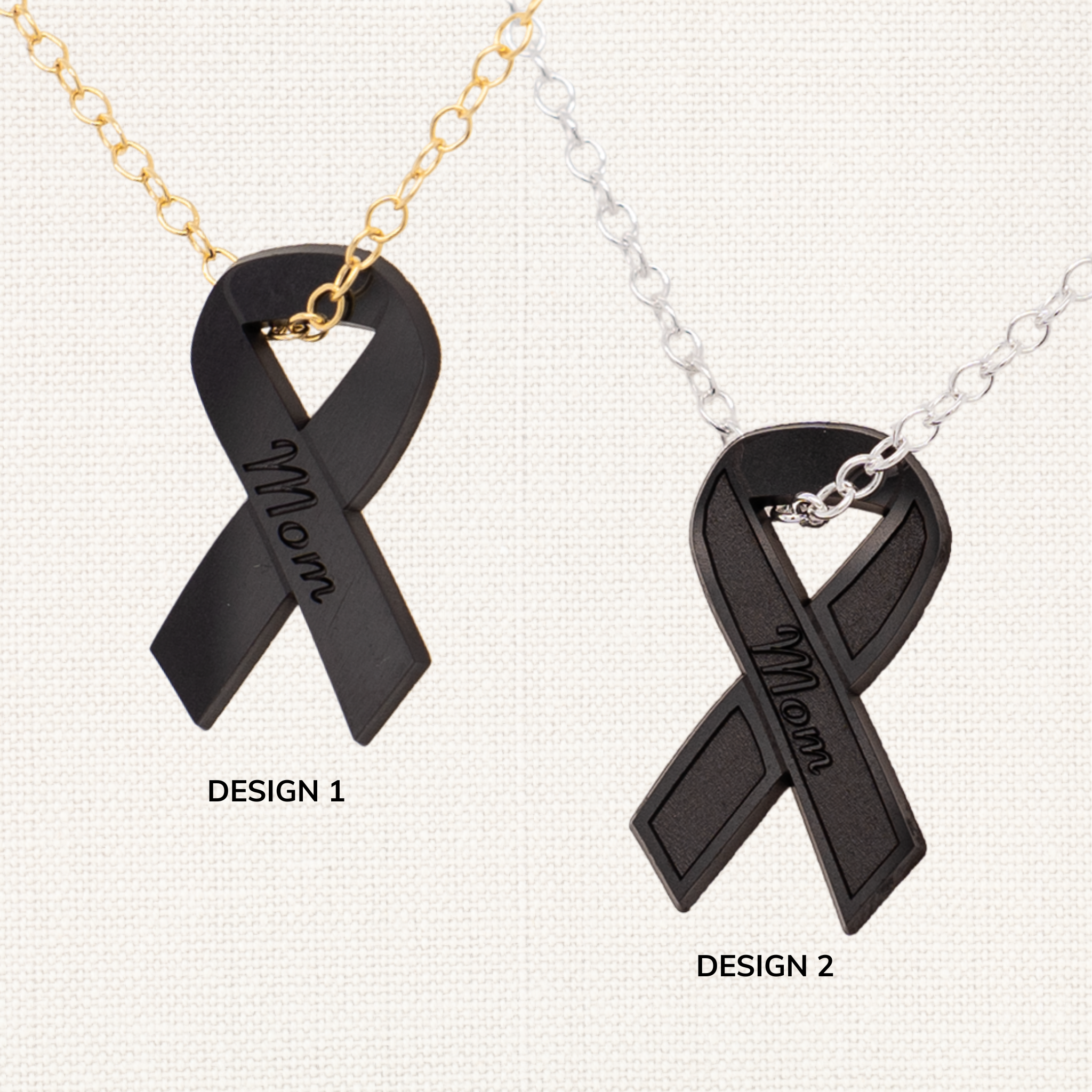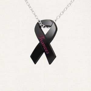 • Solid black diamond pendant with cut-out cancer awareness ribbon