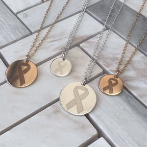 • ½" disc with laser-engraved cancer awareness ribbon