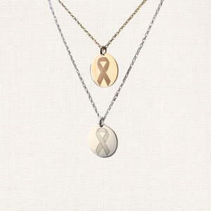 This delicate Cancer Awareness Disc Necklace is a heartfelt way to honor a journey, a loved one, or a milestone. Each ½" disc is laser-engraved with a cancer awareness ribbon and crafted in your choice of 14K gold filled or .925 sterling silver.